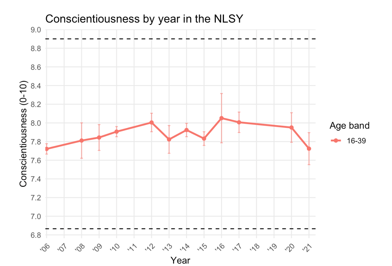 There’s another study called the NLSY, the National Longitudinal Study of Youth, that also tracked conscientiousness during the period.